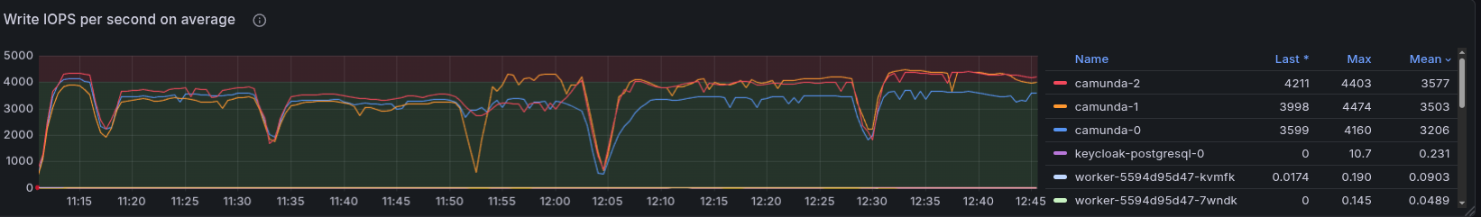 We haven't increased the resources of the cluster, as we wanted to compare the performance with and without secondary storage with a similar configuration. But this would be an interesting follow-up experiment to see how much we can increase the performance by increasing the resources of the cluster. For example, increasing the disks and CPU, as this is the limiting factor of IOPS in GCP, and Camunda is I/O intensive.